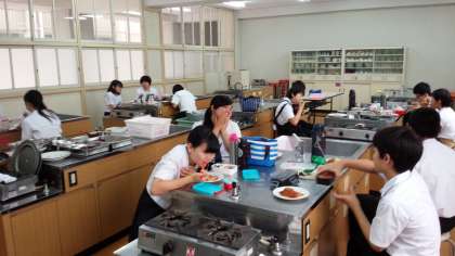 今日は、2年3組が調理実習で「ハンバーグ」づくりをしました。