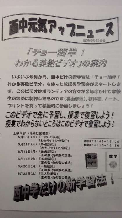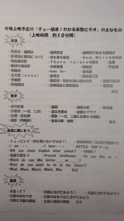 本日から図書館において、「チョー簡単! わかる英数ビデオ」を使った「放課後学習会」がスタートしました。