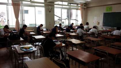 3年生の教室では、3年生有志が、実力テスト前自主学習会を行っています。