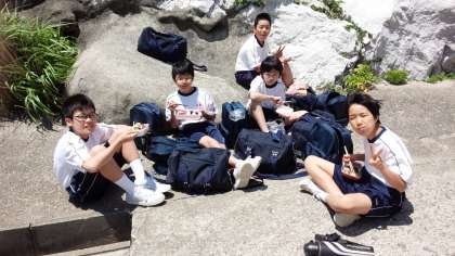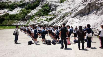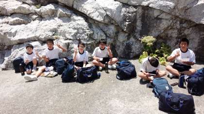 平成の百景に選ばれた白崎海洋公園に到着しました。たいへん風が強いですが、天候も良く、快適に行程を進めています。これからお弁当タイムです。