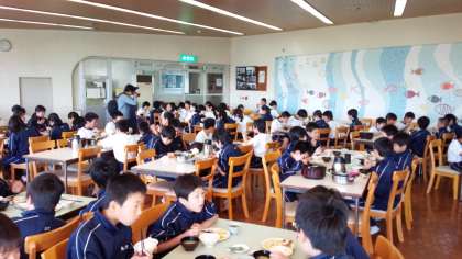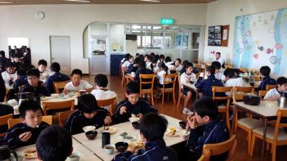 朝飯前に、朝の集い〜ラジオ体操。限られた時間の中でてきぱきと行動。このような生活は健康な身体づくりと一日の安全で効率的な学習に最適なスタイルですね。しっかり食べて今日一日がんばりましょう。