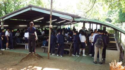 本日の活動は野外炊事からです。火や調理器具には使い方を知らなかったり、間違ったりすると危険がいっぱいです。しっかり話を聞いて、正しい使い方で安全に迅速に、そして美味しく作りましょう。