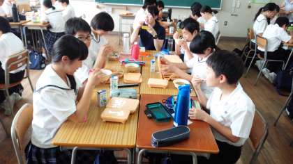 教育実習の先生も、生徒たちと一緒に食べていただいています。