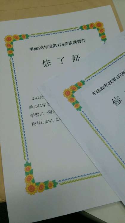 小学生の英検合格をめざして取り組んできた講習会が本日修了式を迎えました。教頭先生から一人一人に修了証が渡されました。