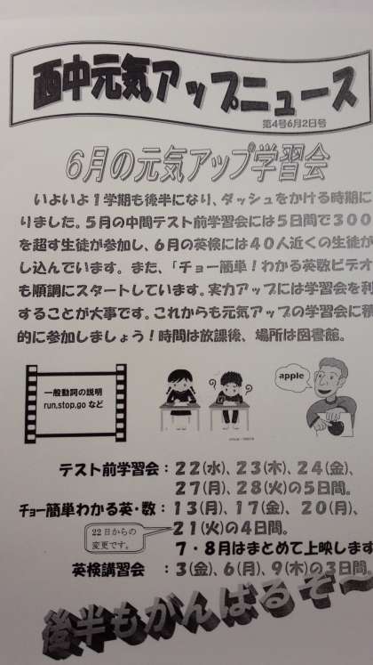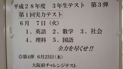昨日、「第1回実力テスト」が終わりましたが、すぐに次の「チャレンジテスト」に向けて学習を始めてください。