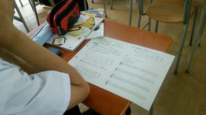教員の相互授業参観週間、最後は音楽の授業でした。