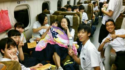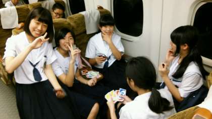 子どもたちは友人とトランプゲームを楽しんでいましたが、飽きてしまっているところもあります。朝が早かったせいかお弁当が待ち遠しいですね