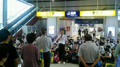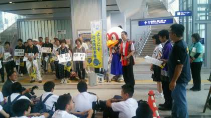 出水市のキャラクター『つるのしん』の見守る中で入村式を行いました。