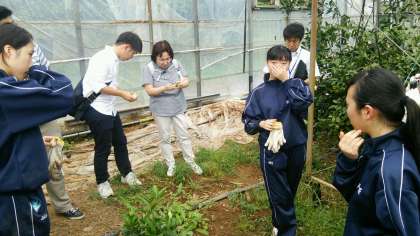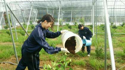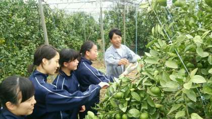 ハウスみかん畑肥料やり