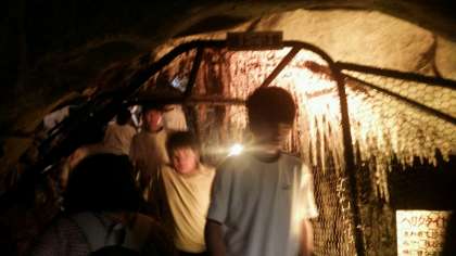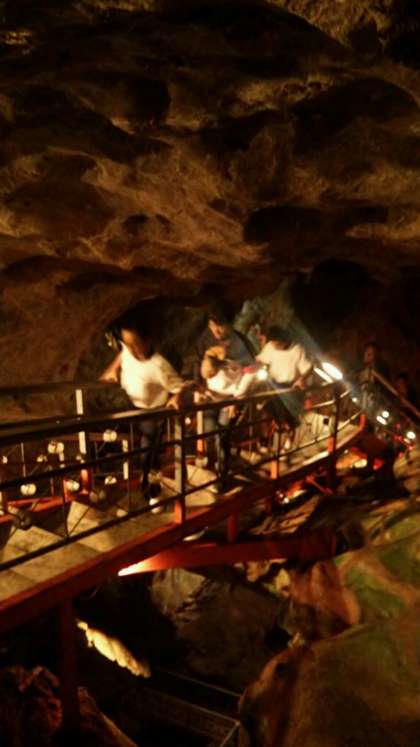 何万ものコウモリの行動に誘われ発見された神秘の世界…時間の関係でショートコースでしたが、岩壁を流れる激流に水の恐怖を感じました。球泉洞の横を球磨川が、見えましたが、茶色の濁流は恐怖そのものです。