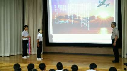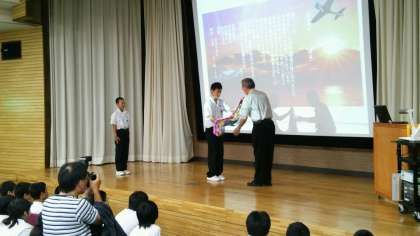 西中生が平和を祈念し、戦没者への哀悼の気持ちを千羽鶴として捧げます。