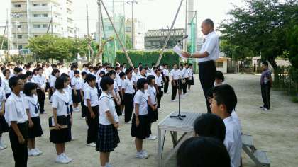 梅雨の合間の晴天のもと、全校集会を行うことができました。