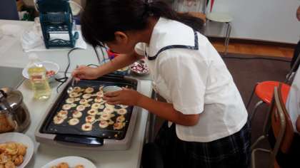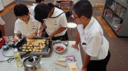 今回は、「たこ焼きづくり」に挑戦です。みんな、とても器用にたこ焼きをつくっていました。