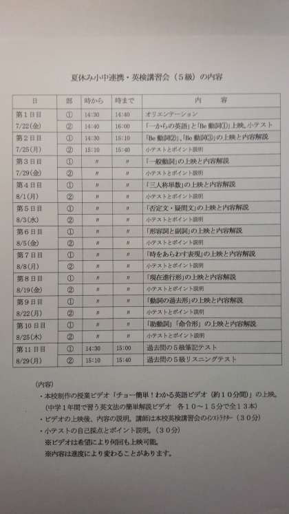 本日は、夏休み小中連携英検講習会の第2日目です。