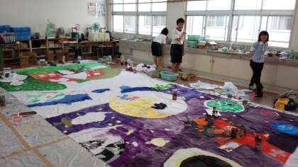 美術室はエアコンが設置されていませんので、大変な暑さです。