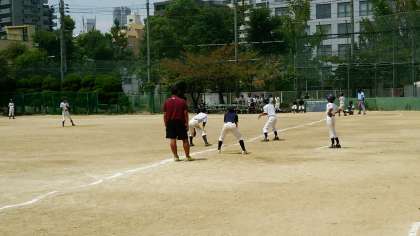 今日は、3Bの野球部の顧問の先生方が集まり、相互の審判技術の研修と生徒への指導を行っていました。