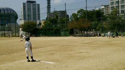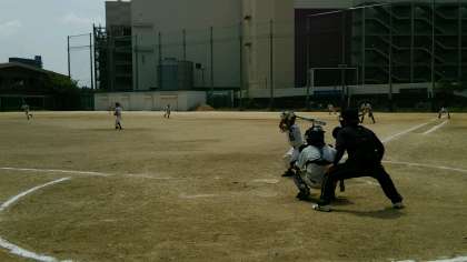 運動場では、野球部が新チームによる練習試合を元気に行っていました。まだまだスピードもパワーも見劣りしますが、来週から新人戦が始まります。頑張ってください。