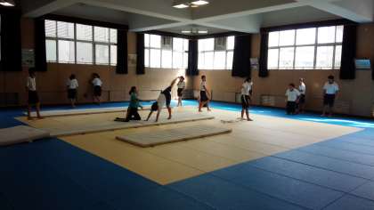 昨日から再開された朝練に続いて、本日は午後からも、3年生集団演技の練習が、武道場で行われています。