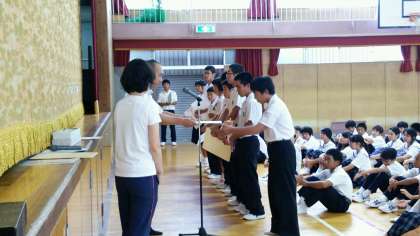 夏季休業中の大会の賞状伝達