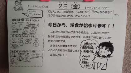 また、職員室前に、日々の献立を載せた「給食カレンダー」を掲示してくださいますので、ぜひご覧ください。