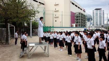 湯谷先生に離任のご挨拶をしていただきますので、しっかりと聞いてください。