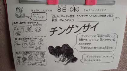 本日の献立は、マーボーなす、チンゲンサイともやしの甘酢あえ、枝豆です。