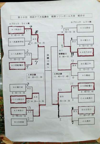残念ながら西中学校及び西中学校校区の学校園は一つもこの決勝トーナメントに勝ち上がっておりません。
