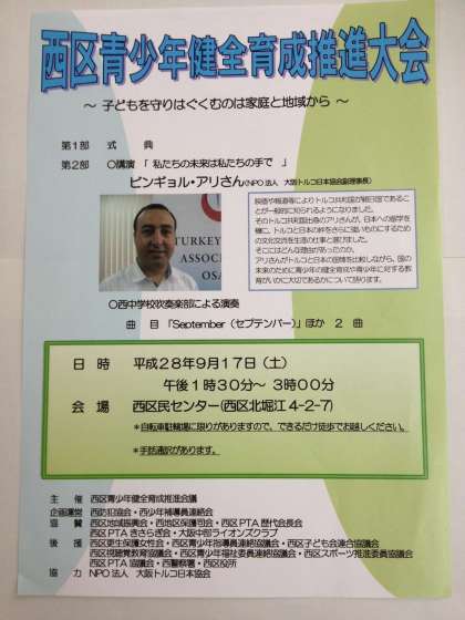 今週の土曜日(9月17日)は西中学校の土曜授業ですが、午後から西区民センターで『西区青少年健全育成推進大会』が行われます。