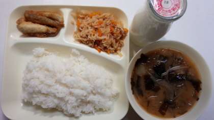 本日の献立は、いわしのてんぷら、みそ汁、切り干しだいこんのいため煮、です。