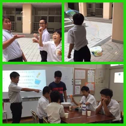 先生方も、生徒と共にシャボン玉づくりを楽しめました。