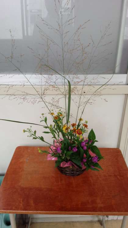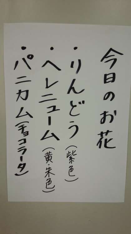 校長室前に飾っていただいたものと同じお花を、2年3組教室前の廊下に飾ってくださっています。