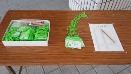 玄関に受付を設けていますので、ご記名いただき、入校証を首からかけて自由にご見学ください。