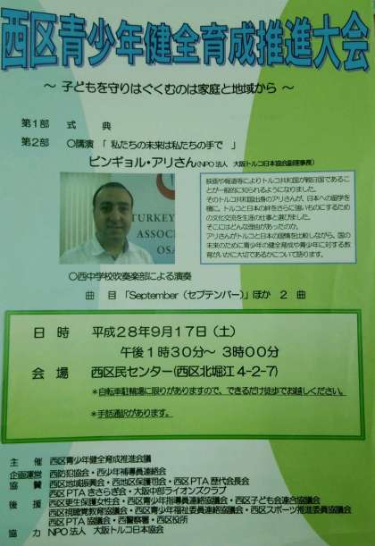 先日もお知らせしましたが、本日午後から西区民センターで『西区青少年健全育成推進大会』が行われます。
