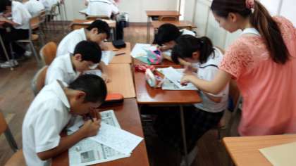 本日の土曜授業、1年生は、文化発表会に向けて、ステンドグラスの制作に取り組んでいます。