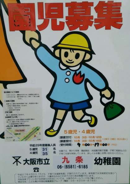 九条幼稚園から園児募集のポスター掲示の依頼がありました。