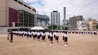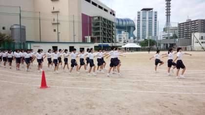 天候不順のため、行進練習も、今のところ体育館の中でしかできていません。