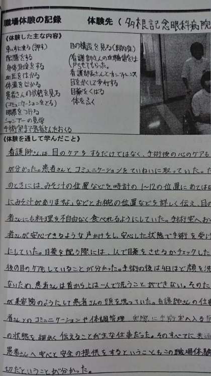 多くの事業所から「よく頑張ってくれました」とのお返事をいただき、よい職場体験学習となりました。