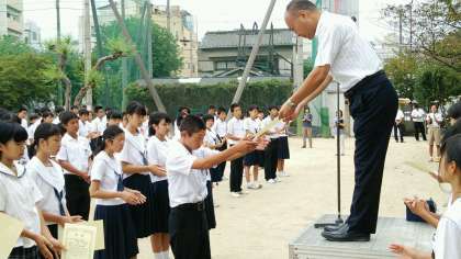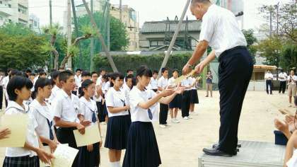 本日、全校集会で第68回生徒理科研究発表会で受賞した生徒の賞状伝達が行われました。