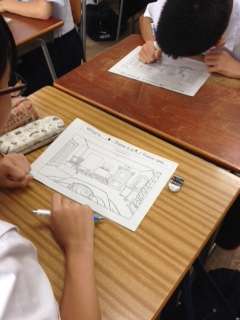 それぞれ違う絵を持ったペアが、お互いに英語で質問し、絵の中の空欄に絵を描きこんでいくインタビューゲームです。