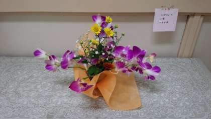 部活動体験で活けていただいたお花が、今朝、出勤すると、まだ金曜日とかわらず綺麗に咲いていました。