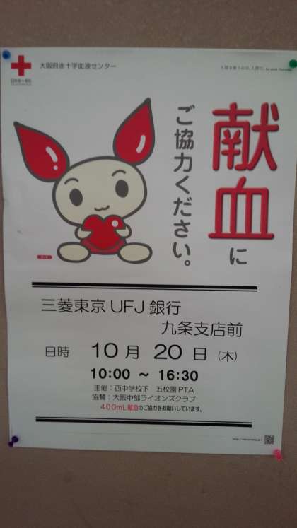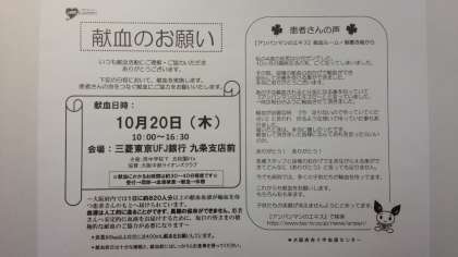 五校園PTA「愛の献血」が、いよいよ明後日(10月20日、木曜日)となりました。