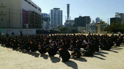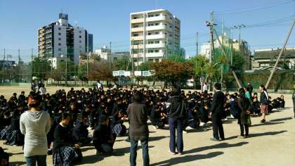 先日の鳥取県地震や、事前の映像等による学習もあり、生徒の行動は迅速であり、安全に運動場へ避難することができました。