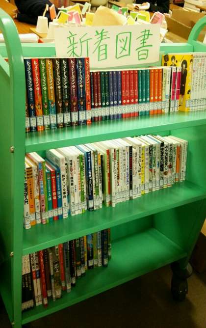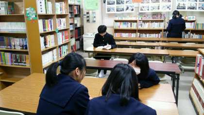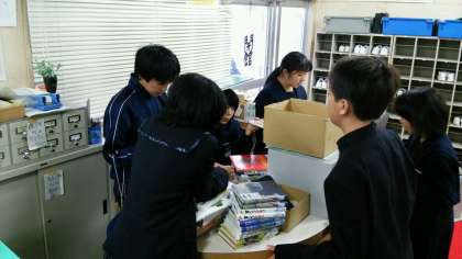 図書館にたくさんの本が入荷されました。図書委員が中心となり新刊本の整理を行っています。今日は14人の生徒が昼休みの時間に読書等で過ごしていました。