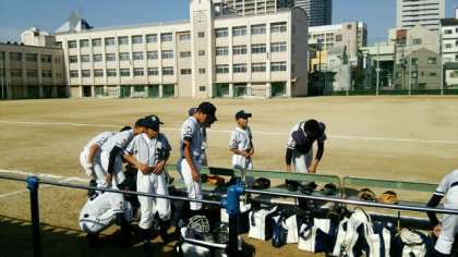 秋晴れのなか、西中学校野球部が決勝トーナメントに臨みます。対戦相手は市岡中学校。