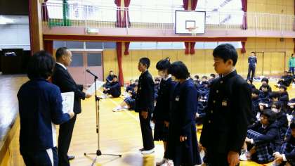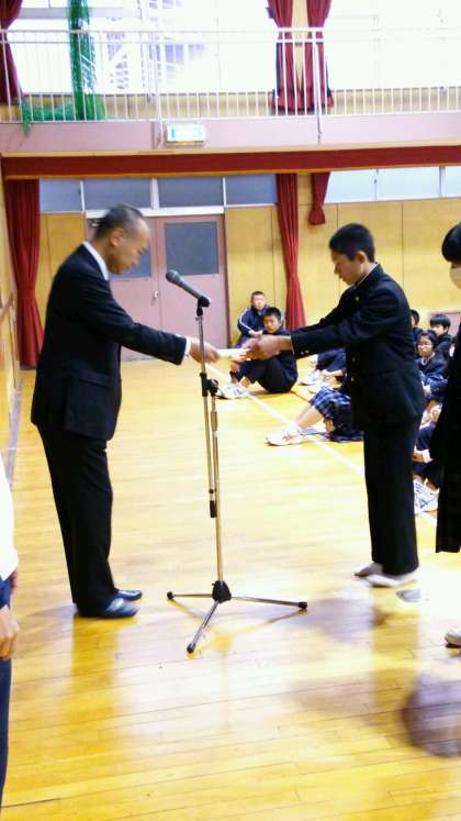 全校集会 野球部の表彰