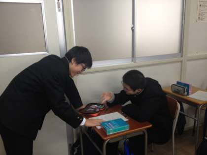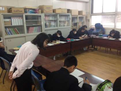 クラスを2つに分けて教室と会議室で授業しました。