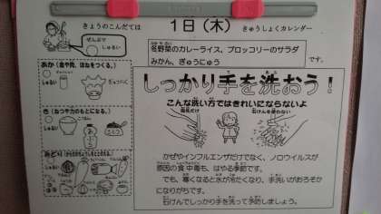 プラスしてブロッコリーとみかんが付いています。しっかり食べて、風邪やインフルエンザに負けない身体をつくってください。