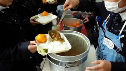 ご覧のように冬野菜たっぷりのカレーライスです。子どもたちも、カレーライスに入っていると、知らず知らずのうちに苦手な野菜も食べることができるようです。