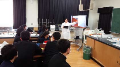 3年1組の生徒たちが、大西教諭の説明を聞いたのち、いよいよ観察実験の開始です。