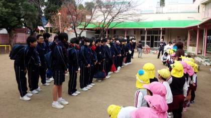 12月6日(火)8日(木)に続いて、本日、1,2時限目には、3年1組が九条幼稚園を訪問しました。